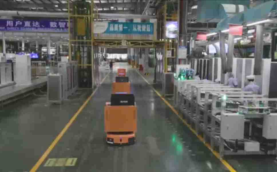 为车载冰箱物流配送打造的智能解决方案,,,包含产中物流通过潜伏举升AMR搬运至线边,,,,产后成品物流智能仓储,,,流程包含产中物流智能齐套入库,,线边安灯叫料AMR智能配送至线边,,,成品入库、、出库,,,,通过无人堆高车机器人,,,智能仓储管理替代人工作业管理,,,,实现更高存储、、更高效率、、更具柔性化的解决方案。。。